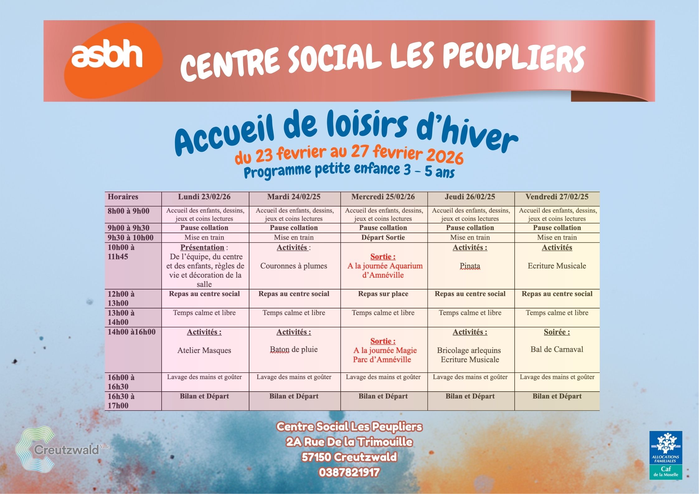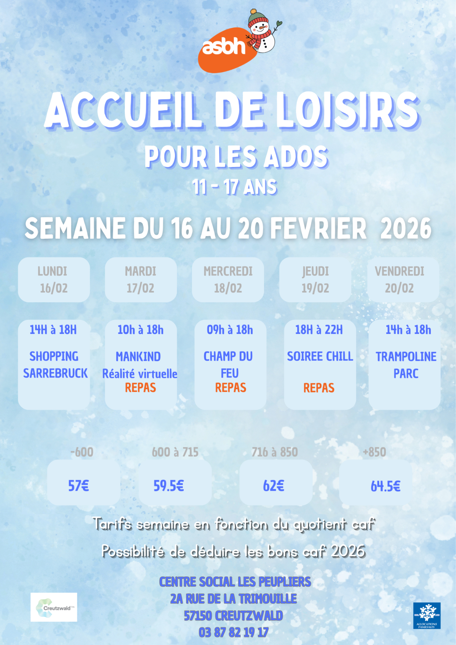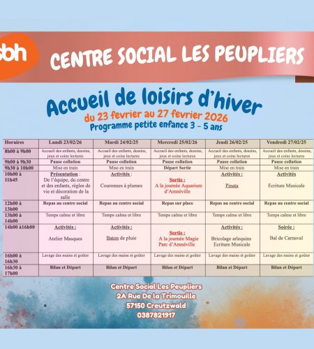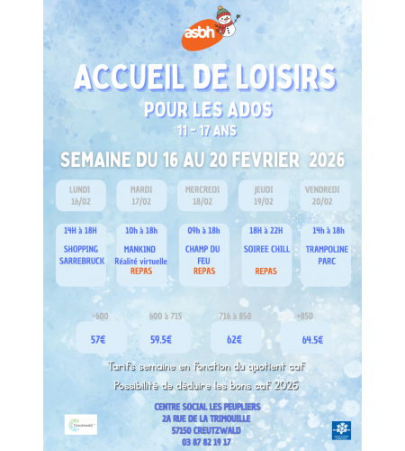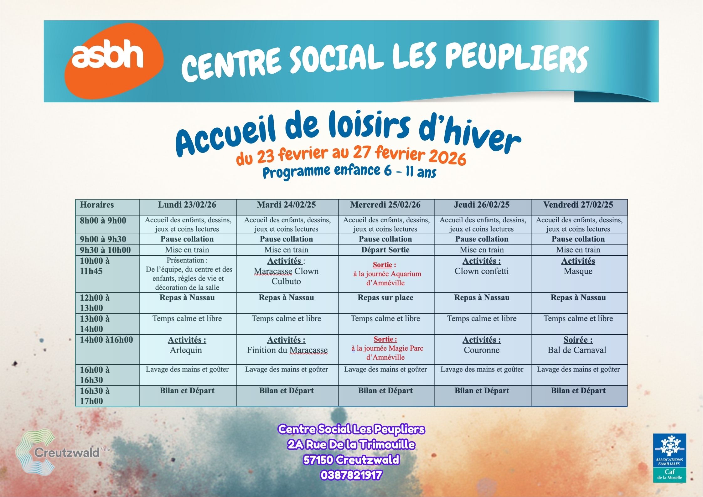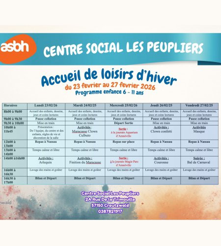 L'ASBH organise les accueils de loisirs pendant les vacances d'hiver, du 23 au 27 février 2026.