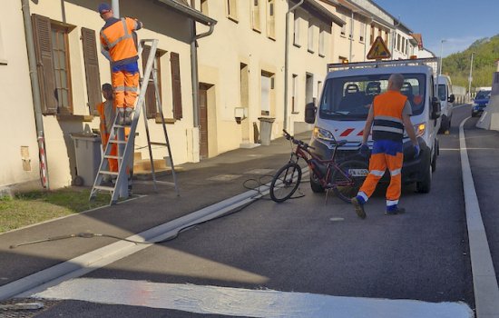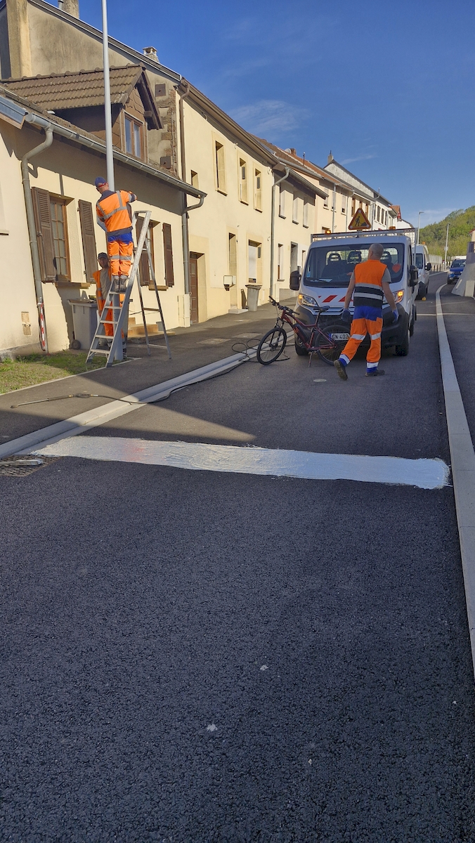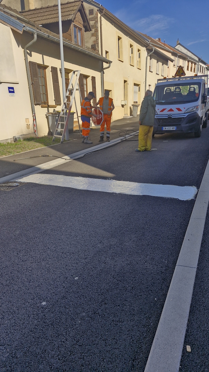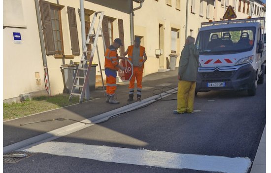 Ce matin, plusieurs ajustements de la signalisation ont été réalisés rue de la Croix et rue des Champs.