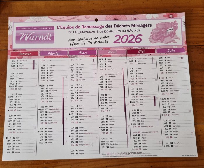 Voici le calendrier officiel distribué par les agents de la collectivité