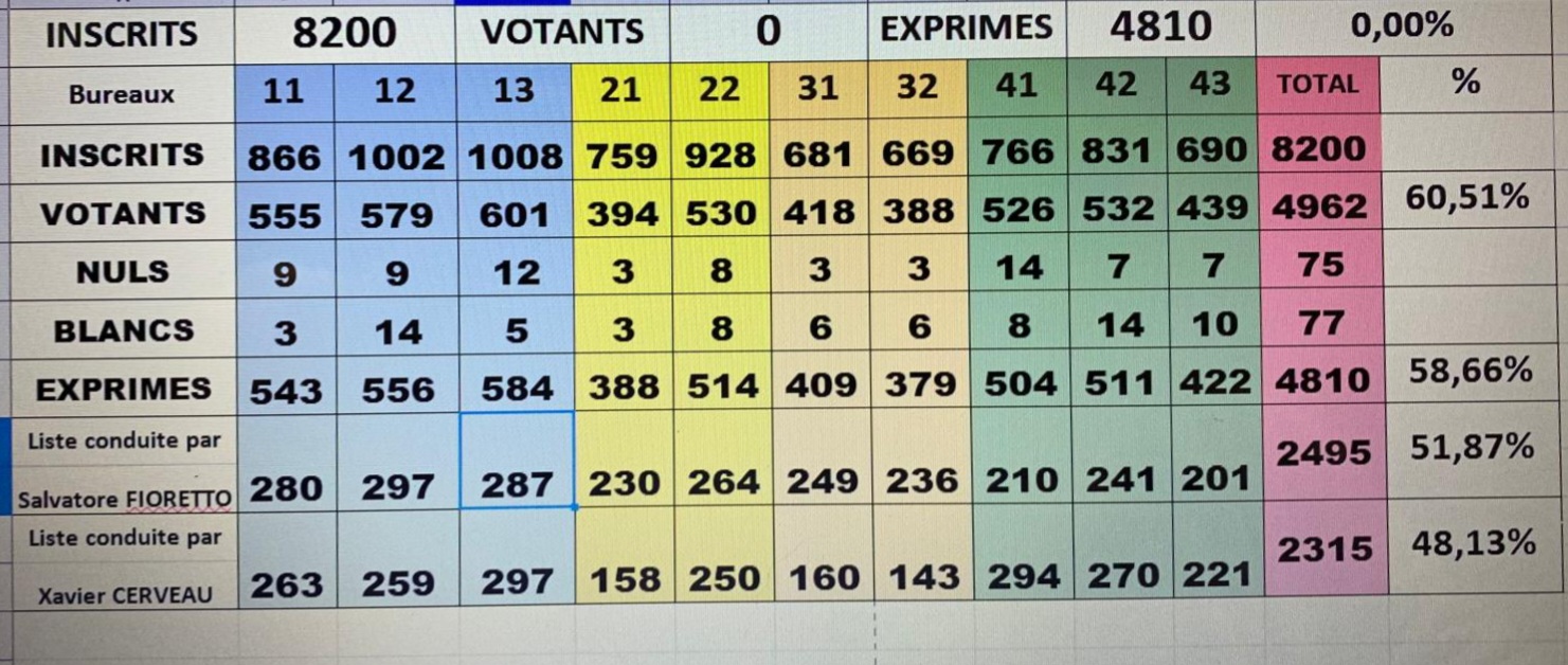 Liste conduite par Salvatore FIORETTO : 51, 87%