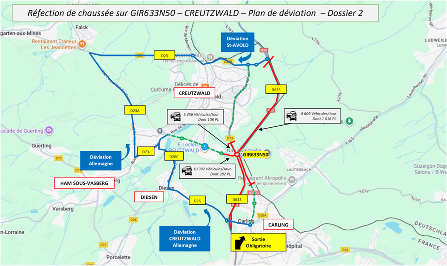 Il est à noté que les travaux pourraient être repoussés en cas de conditions météorologiques défavorables, dans ce cas une nouvelle communication sera prévue par le Département de la Moselle.