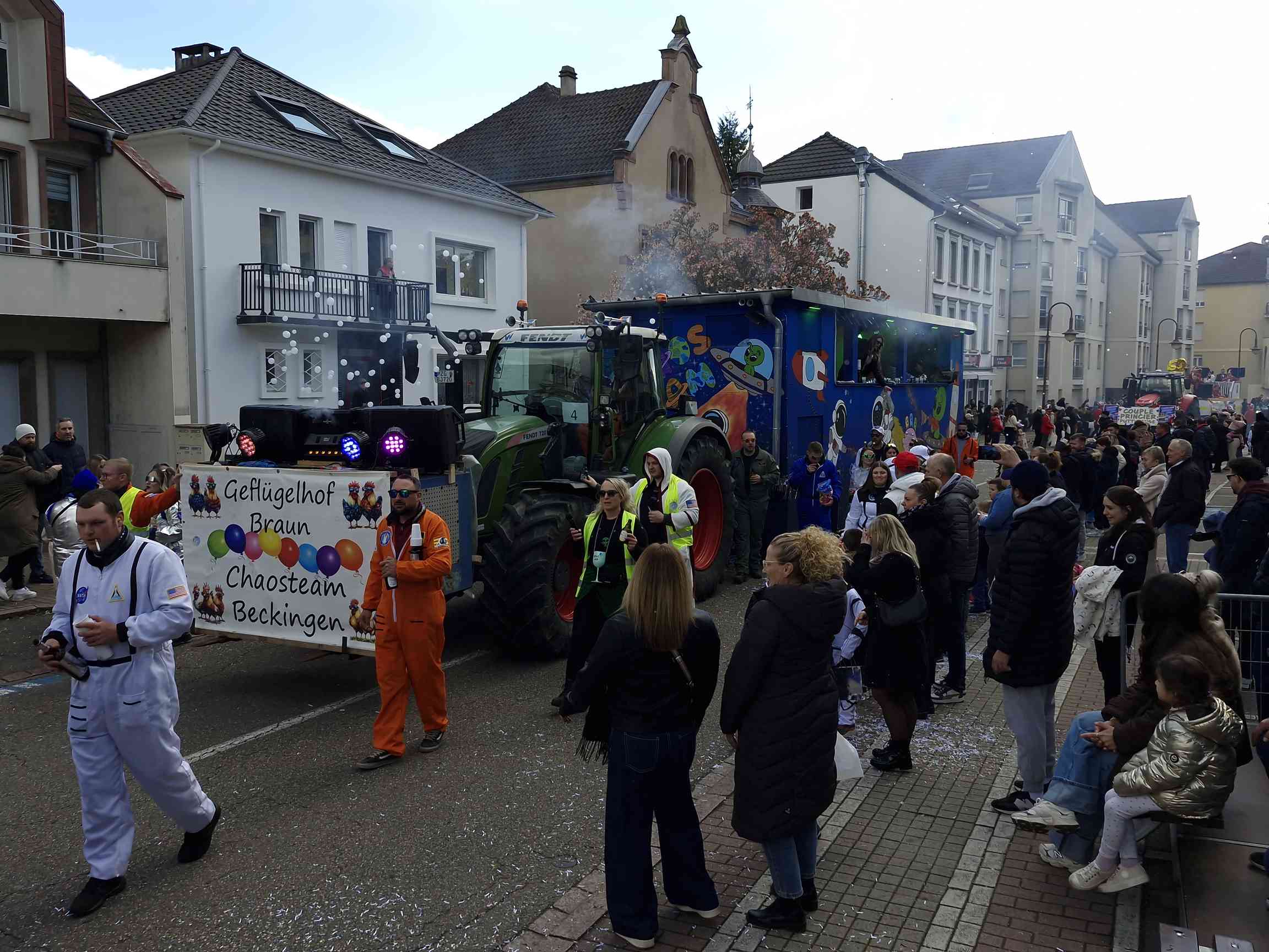 Dès 15h, le cortège s'est élancé depuis le stade nautique sous les décibels du Show Parade de Creutzwald, entraînant dans son sillage près de 40 chars, groupes et formations musicales venus de toute la région Grand Est et de la Sarre voisine.