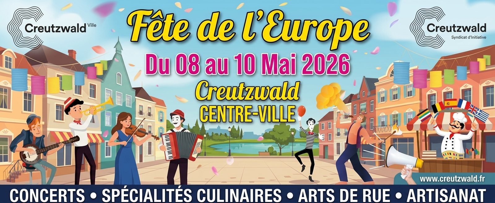 La Fête de l'Europe aura lieu du 8 au 10 Mai 2026 dans les rues du centre ville.
