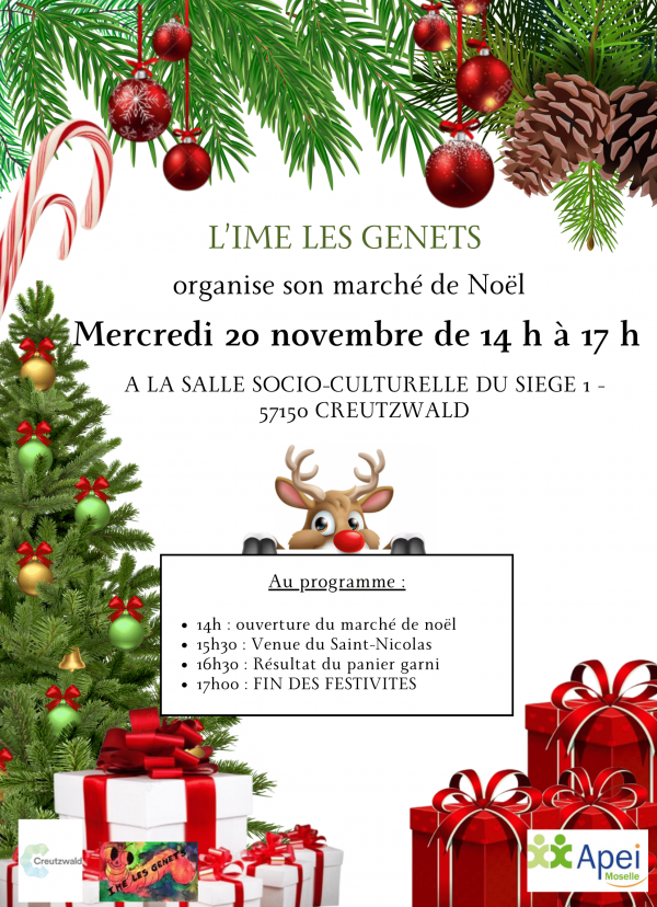 L' IME Les genêts organise son Marché de Noël le mercredi 20 novembre de 14h00 à 17h00