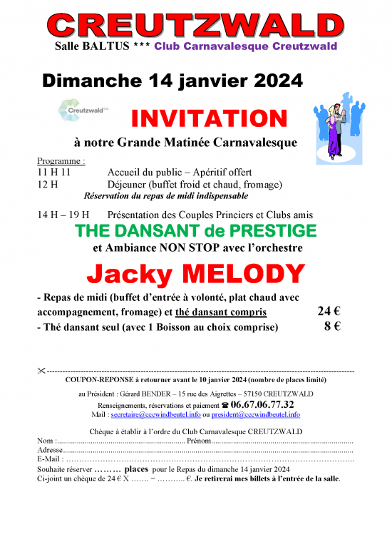 Grande Matinée Carnavalesque organisée par le Carnaval Club de Creutzwald le dimanche 14 janvier 2024