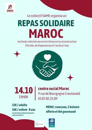 Repas solidaire organisé par le collectif SAME qui s'est créé en Moselle suite aux évènements survenus au Maroc.